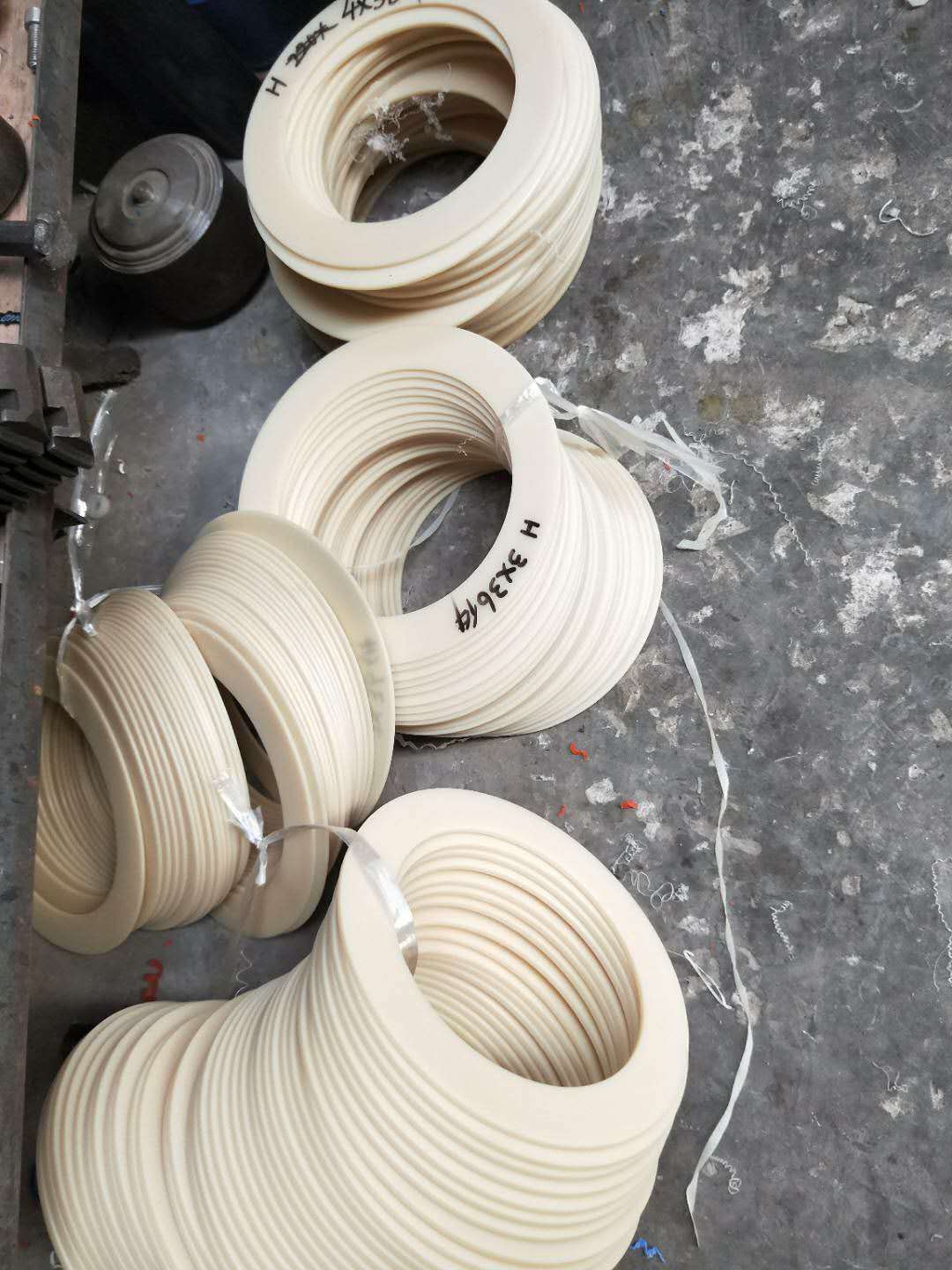 尼龙制品具有高耐磨、耐腐蚀、耐冲击、自润滑,可制作装煤、水泥、石灰、 矿粉、盐、谷物类粉状材料的料斗、料仓、 滑槽的衬里。由于它具有优良的耐摩性、自润滑性及不粘性,使上述粉状材料对储运设备,不发生粘附现象,保证稳定运输。